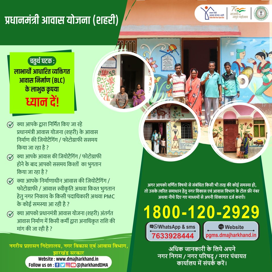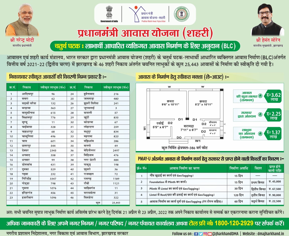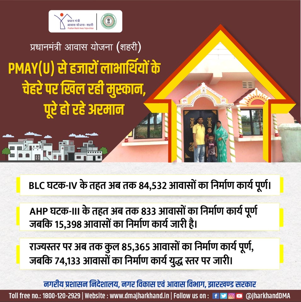 Directorate of Municipal Administration (DMA) is working under Urban Development and Housing Department, Jharkhand provides civic amenities in urban areas and extends support through Urban Local Bodies to the deprived sections of the society as well as shares the responsibility of ensuring planned development of the city and its outskirt. Induction of the 12th schedule in the Constitution through 74th Constitutional amendment has brought various urban activities and services, such as urban planning including town planning, regulation of land use, planning for economic and social development, safeguarding the interests of weaker sections of society, providing civic amenities, promotion of cultural, education and aesthetic aspects etc. within the purview of urban local bodies. It is, therefore, inevitable for the Urban Local Bodies to render services as per the requirement and necessity of the citizen and town in pursuance to the provisions as contemplated in the Constitution. There are 50 urban local bodies consisting of 9 Municipal Corporations, 20 Nagar Parishads, 20 Nagar Panchayats and 1 Notified Area Committee(NAC), responsible for implementation of the Urban Development activities in their respective areas in the State of Jharkhand.
