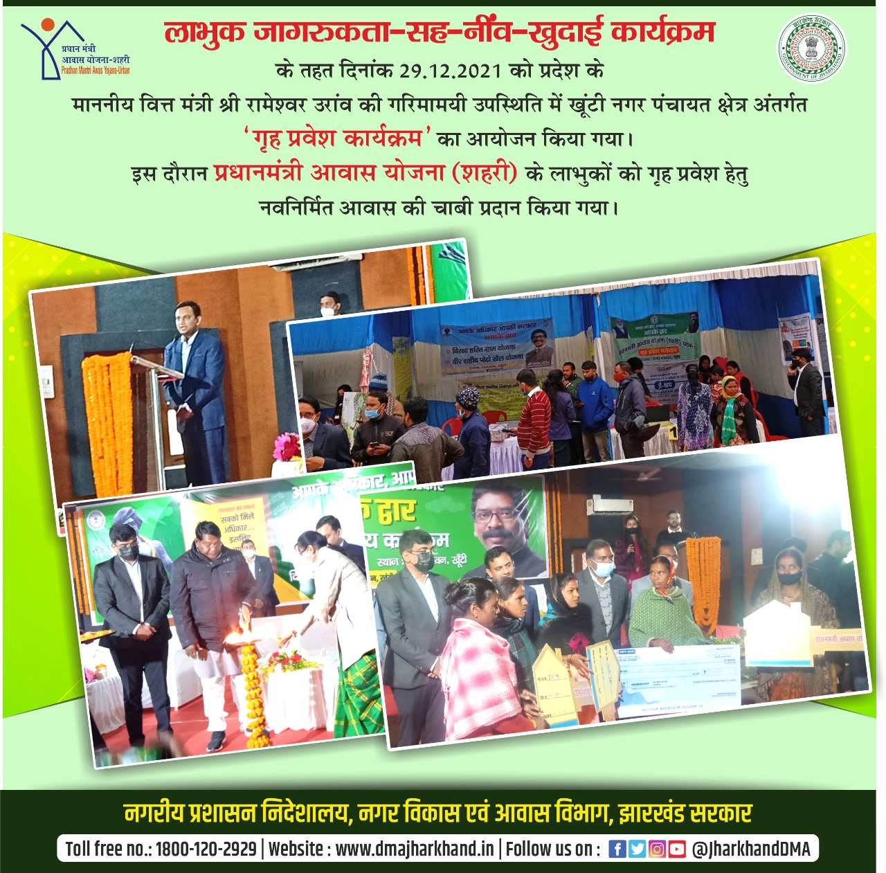 Media Coverage Promotional infographic in respect of house distribution through lottery under PMAY(U) Scheme in Birsanagar Afordable Housing Project.
