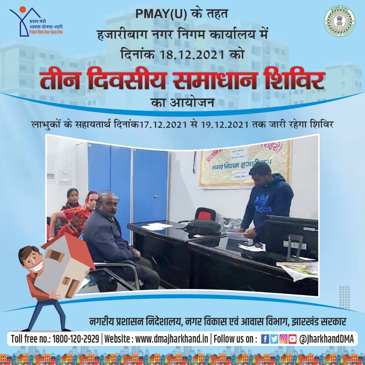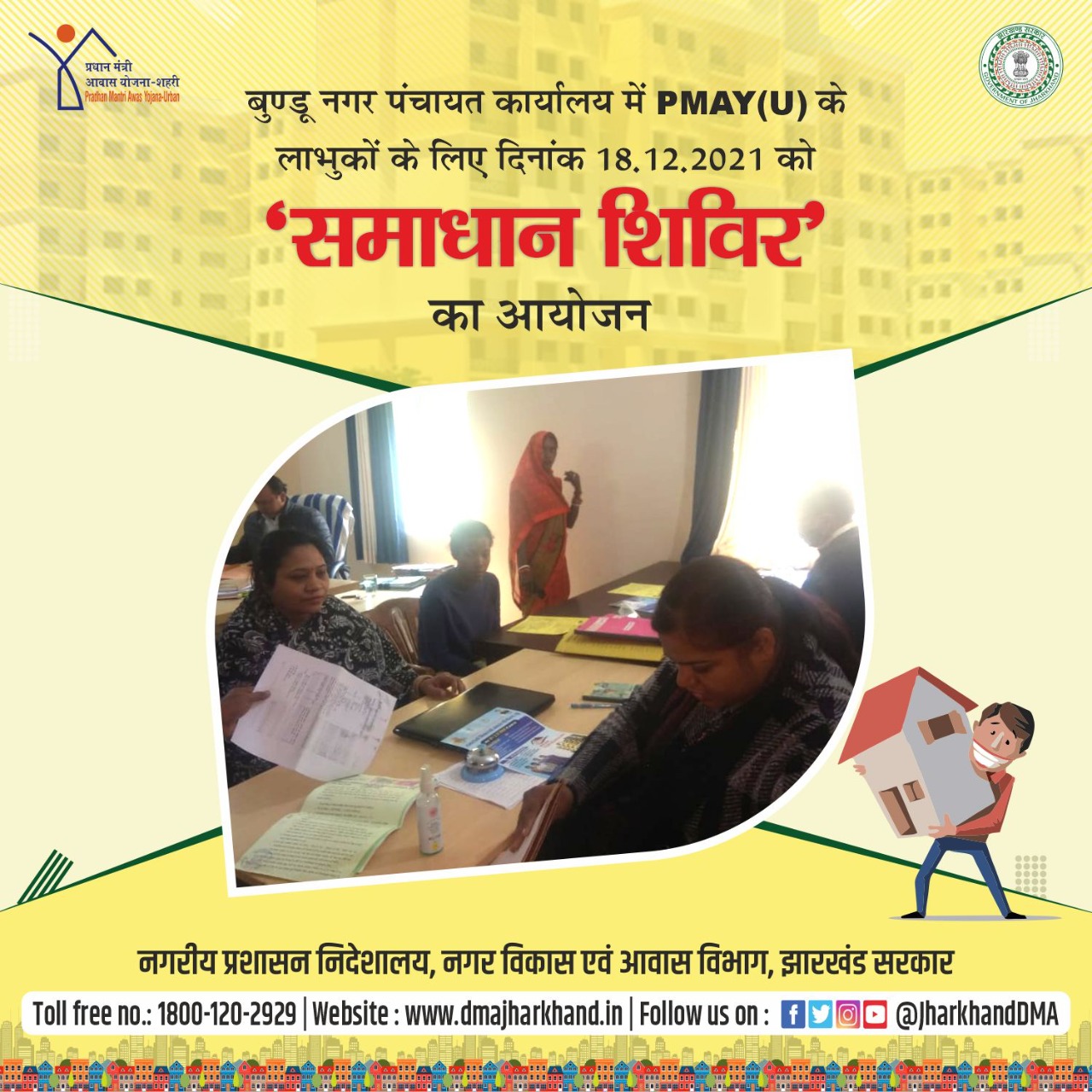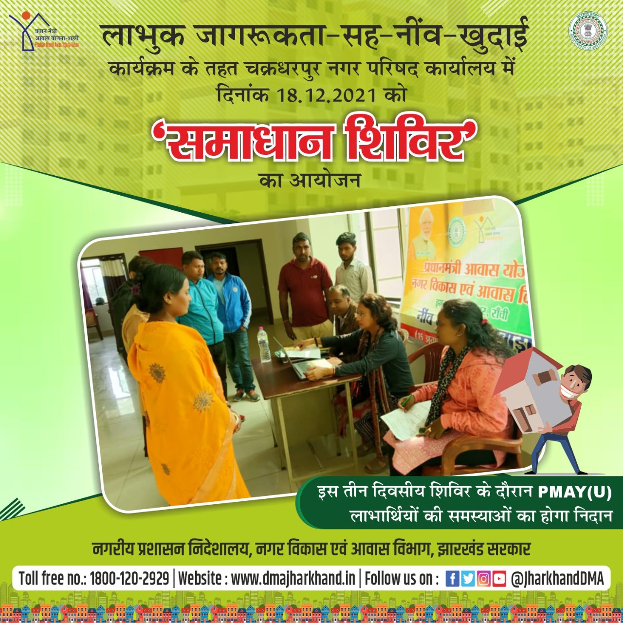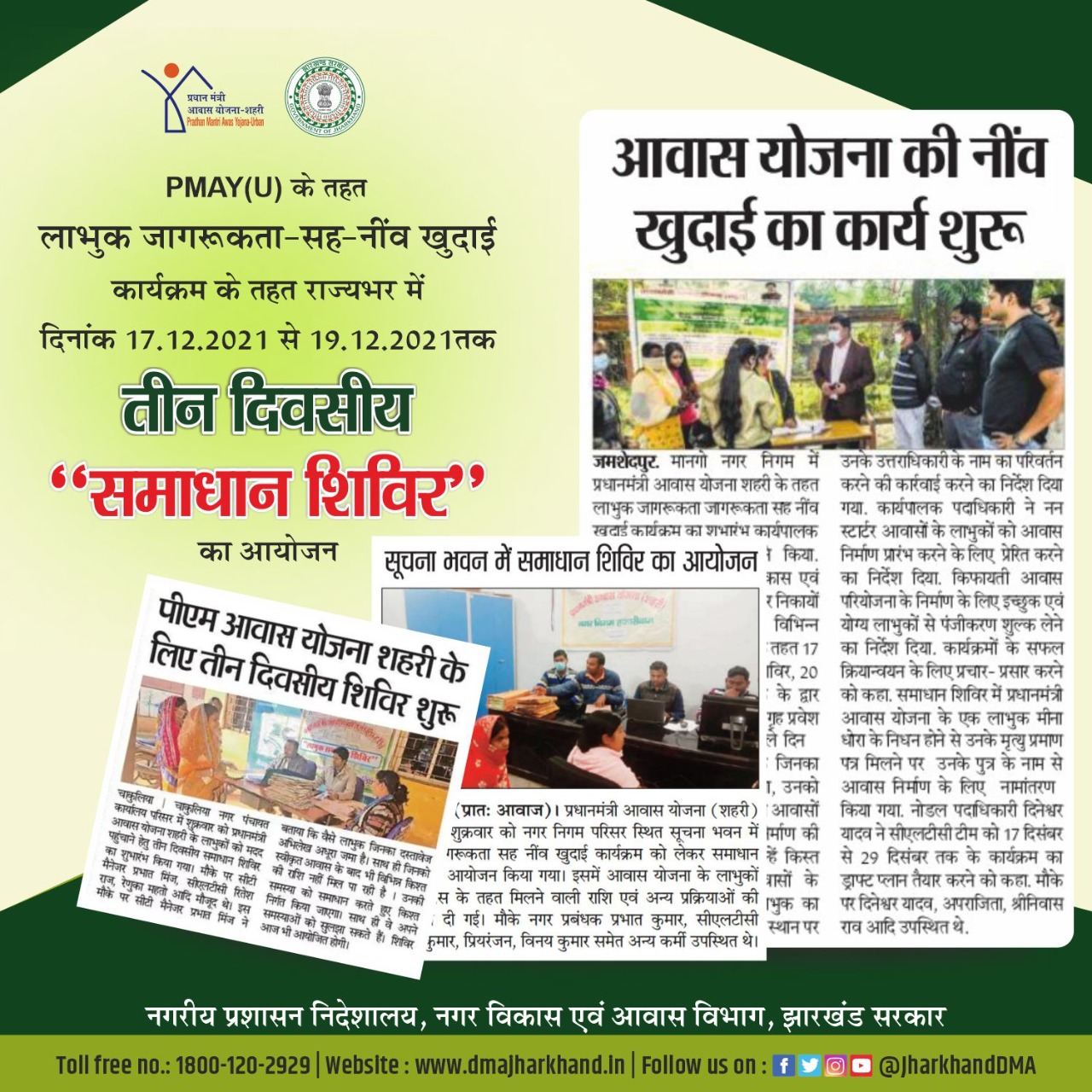 Media Coverage Promotional infographic in respect of Samadhan Shivir under PMAY(U) स्कीम.