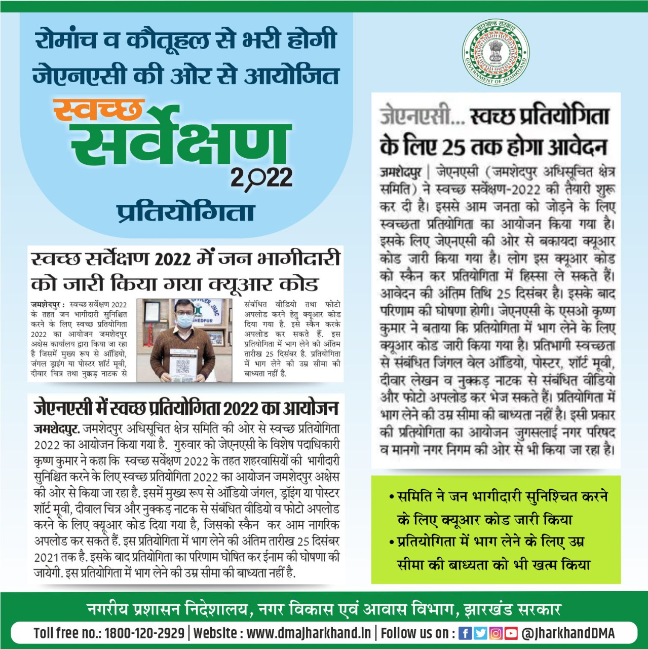 Media Coverage Promotional infographic in respect of preparation of Swachta Sarvechan 2022