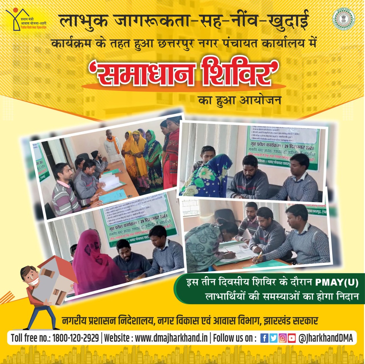 Photo collage of Samadhan Shivir programme for social media promotion under PMAY(U) Scheme.