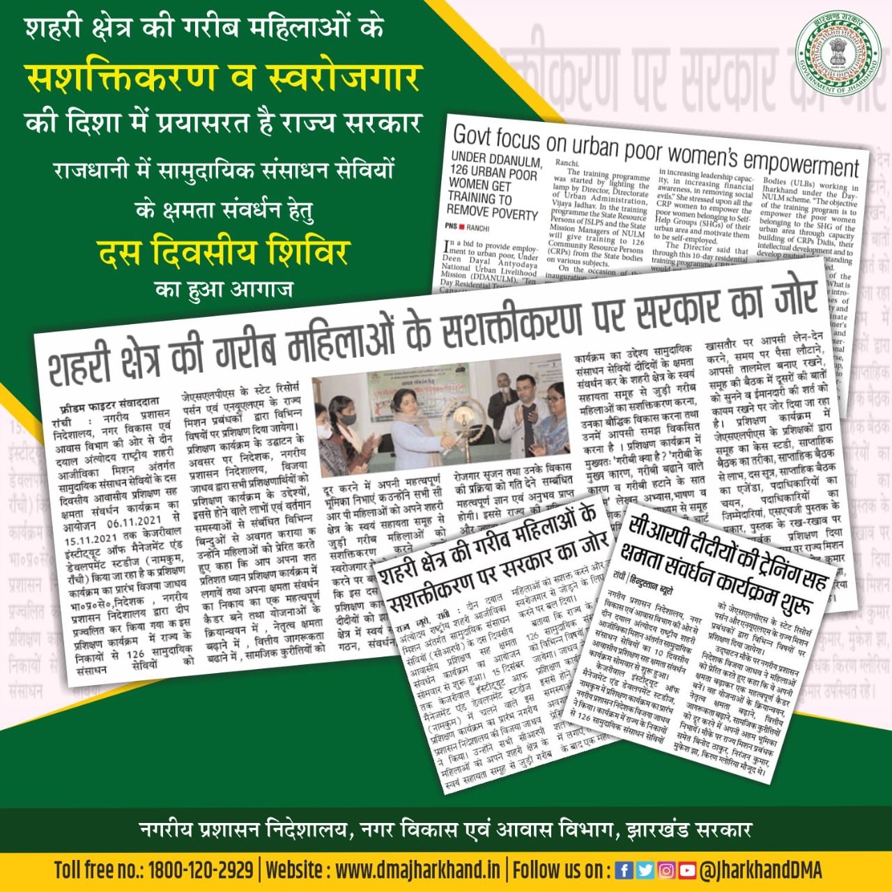 Media Coverage Promotional infographic in respect of 10 Days CRPs Training Programme under DAY-NULM Scheme.