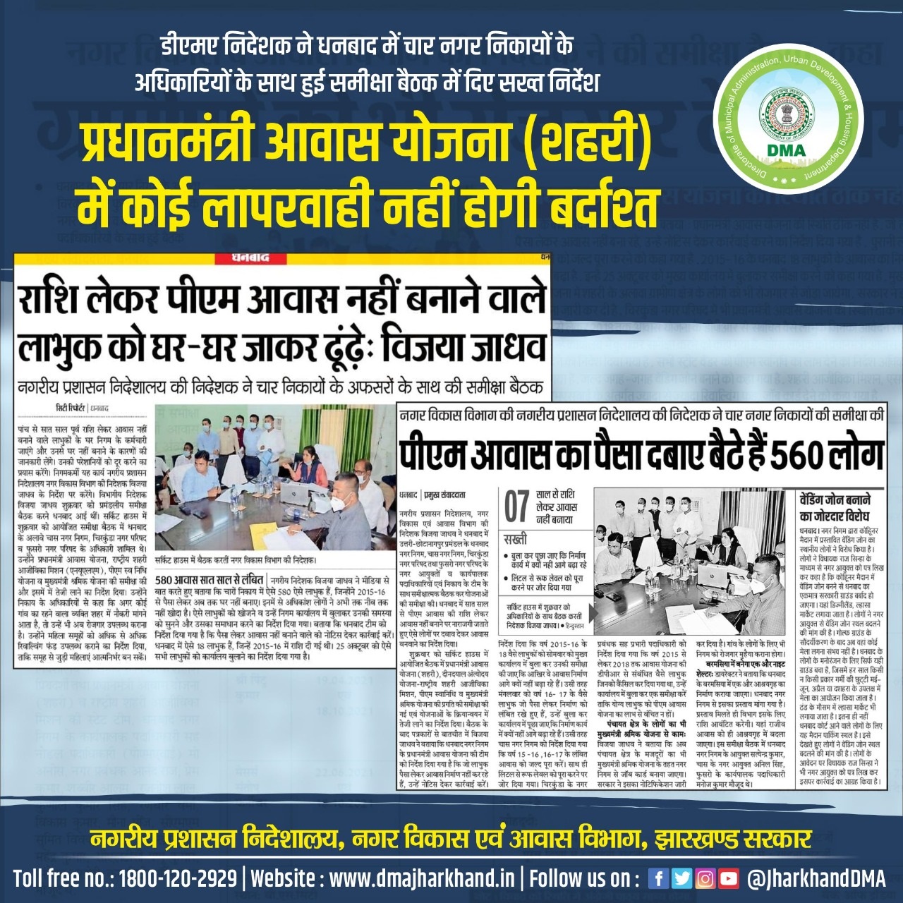 Media Coverage Poster for social media promotion of DMA activity in respect of PMAY(U) scheme.