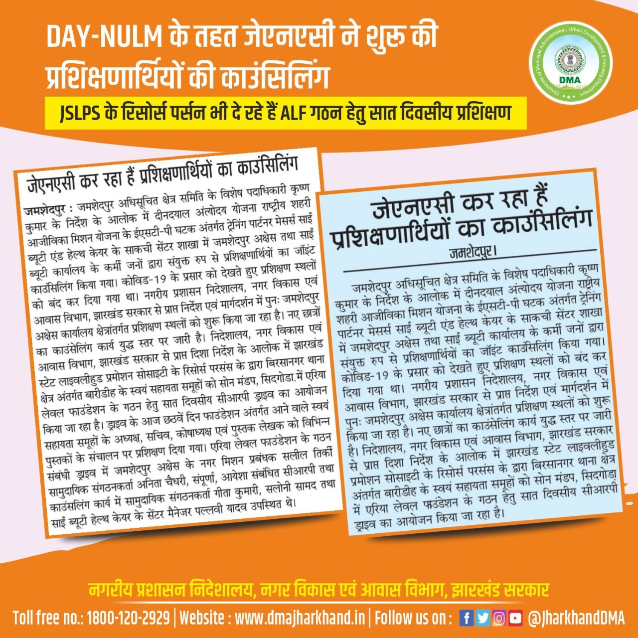 Media Coverage Poster for social media promotion of ULB activity in respect of ALF Formation under DAY-NULM scheme.