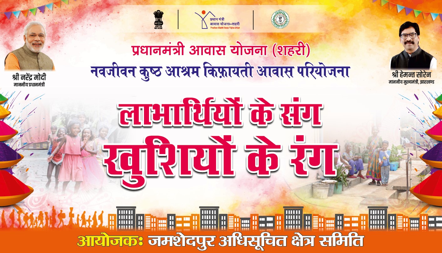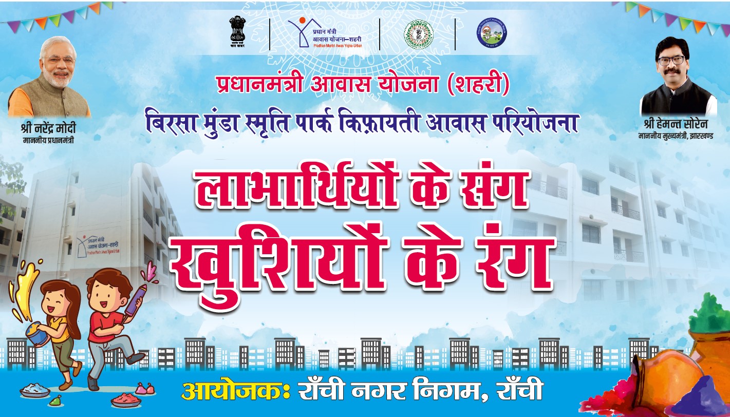 Banner of Holi Celebration for Birsa Munda Smirti Park Affordable Housing Project.
