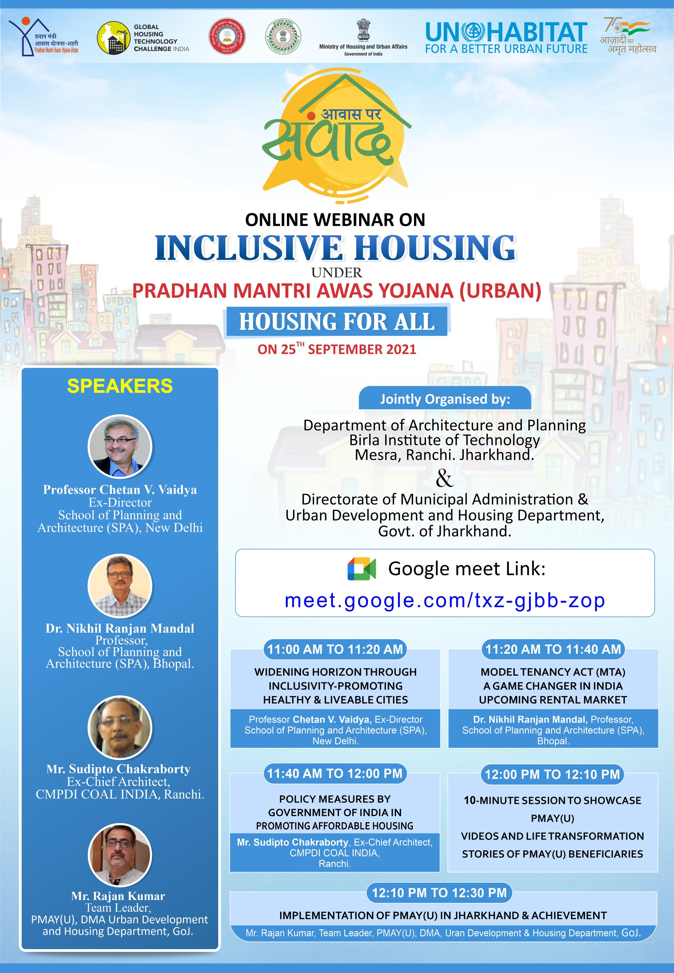 Invitation design for Online Webinar on inclusive housing under PMAY(U) scheme.