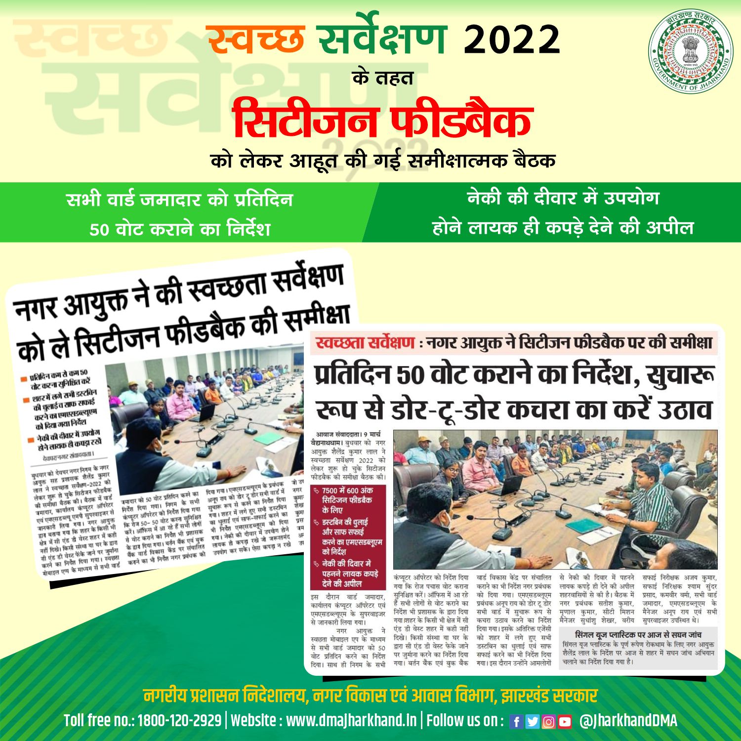 Media Coverage infographic in respect of Swachh Survekshan 2022.
