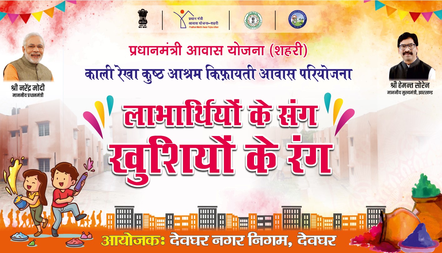 Banner of Holi Celebration for Kali Rekha Kusth Ashram Affordable Housing Project.