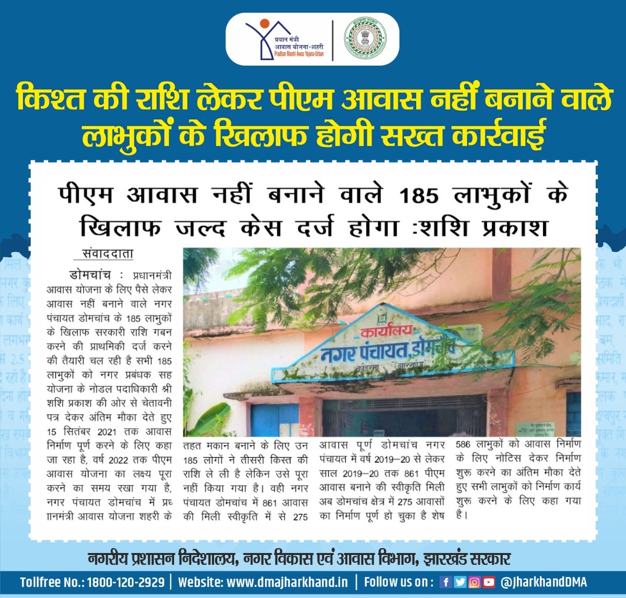 Media Coverage Poster for social media promotion of DMA activity in respect of PMAY(U) Scheme.