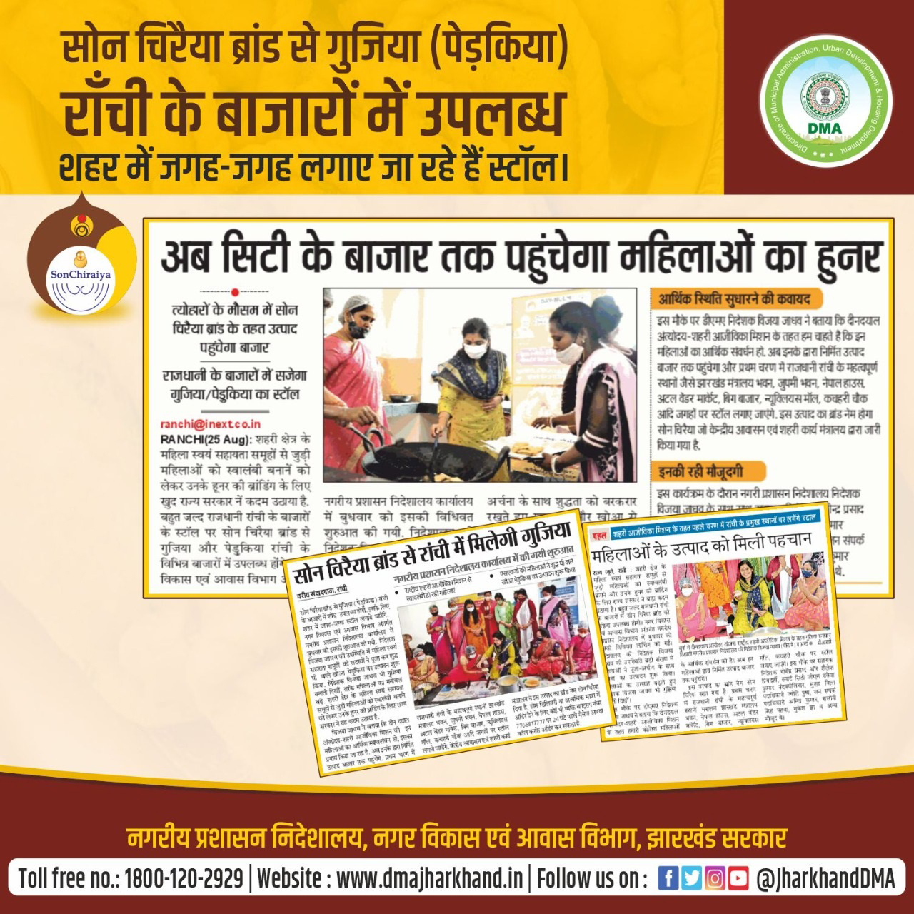 Media Coverage Poster for social media promotion of DMA activity in respect of SHGs food product promotion under Sonchiraiya brand.