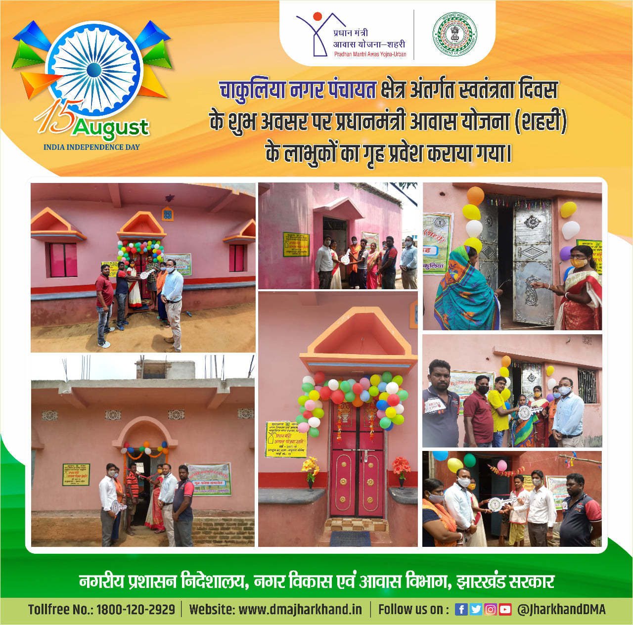 Social media promotional poster of PMAY(U) House inauguration on occasion of Independence Day for Chakuliya Nagar Panchayat.
