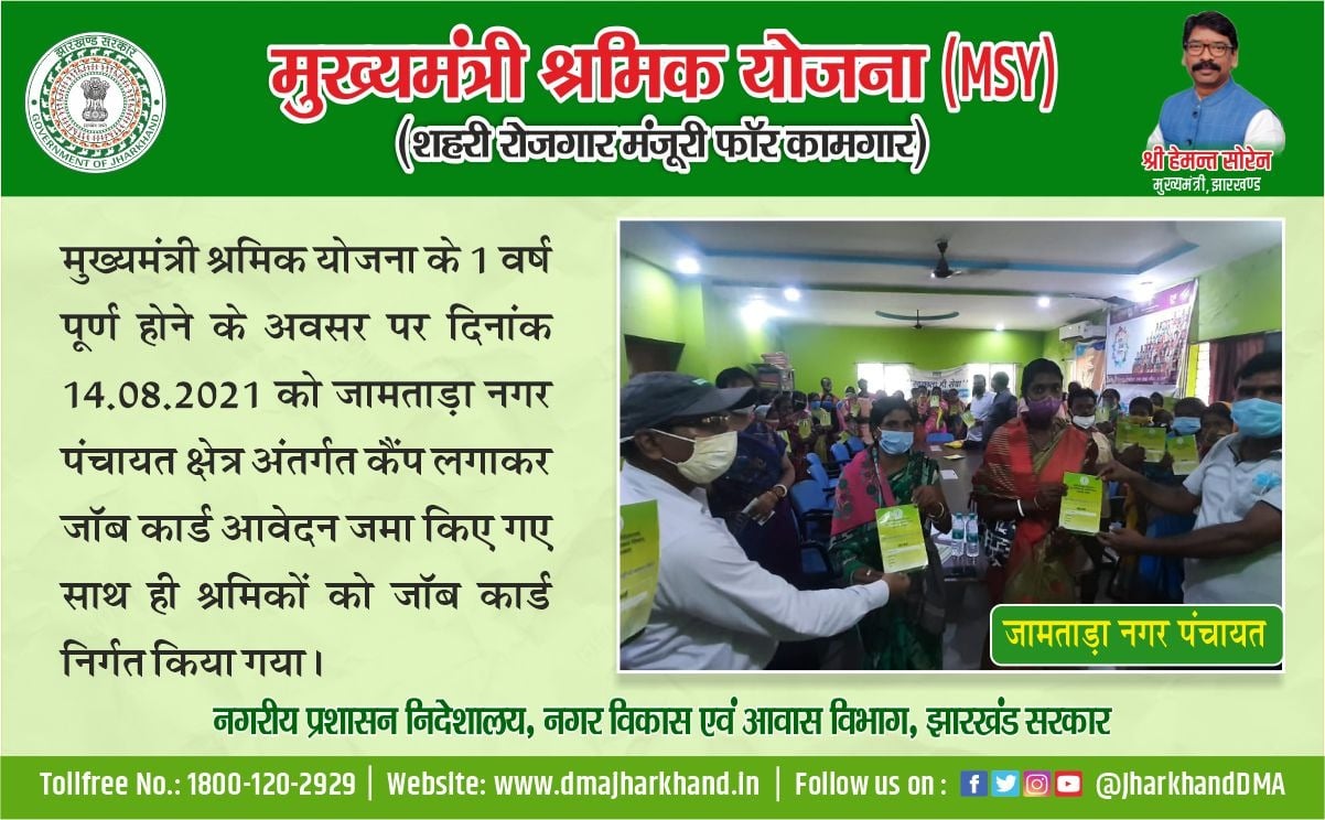 Social media promotional poster with ULB work activity of MSY on occasion of MSY Anniversary for Jamtara Nagar Panchyat.