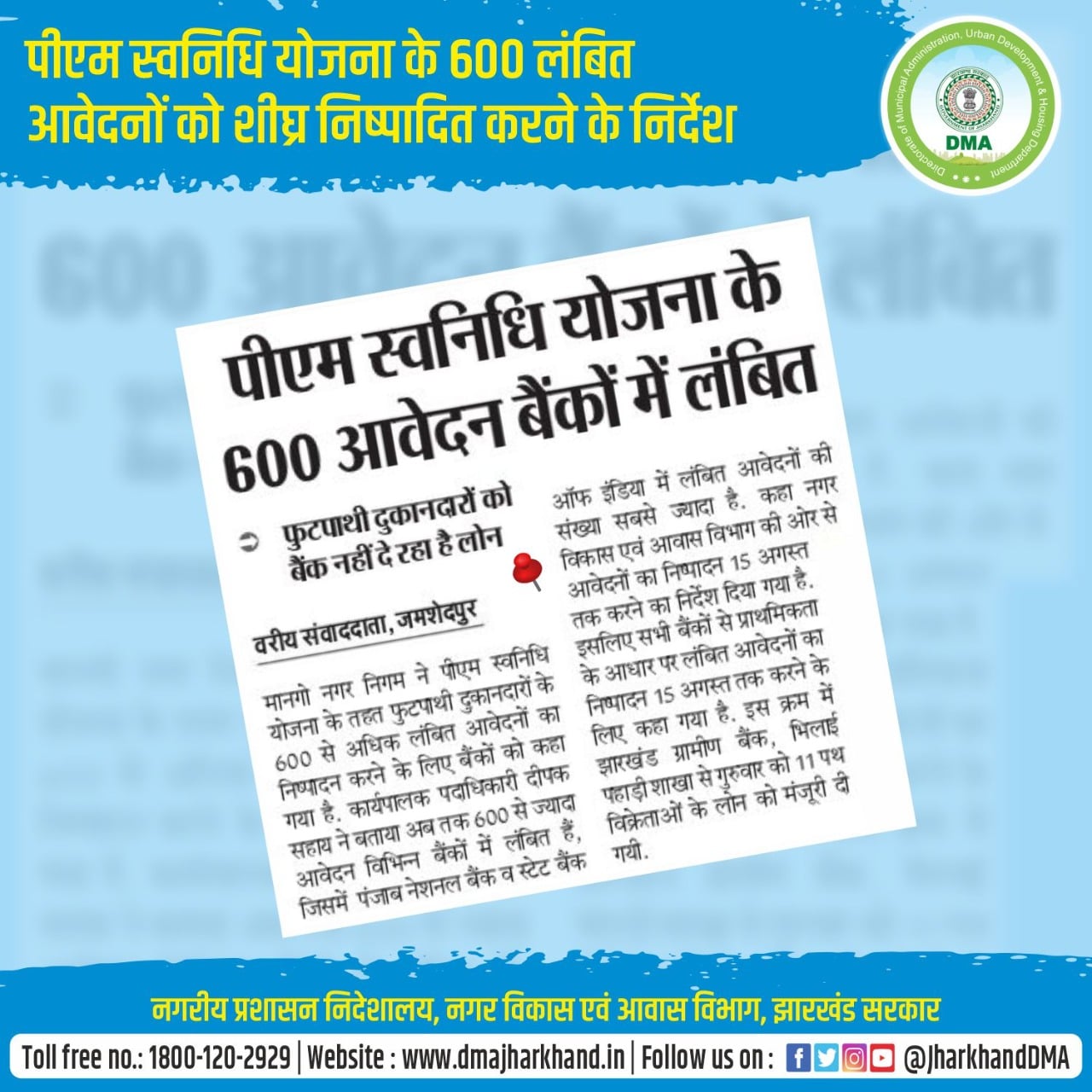 Media Coverage Poster for social media promotion of Jamshedpur in respect of shop allotment.