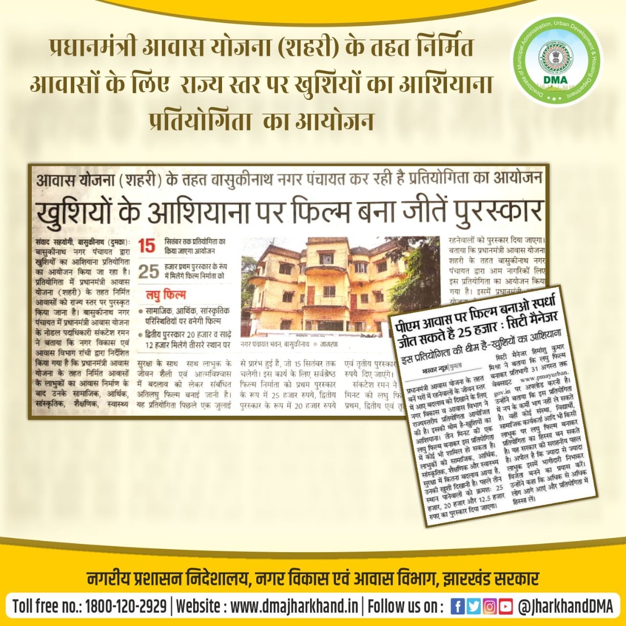 Media Coverage Poster for social media promotion of PMAY(U) Scheme in respect of short video competition.