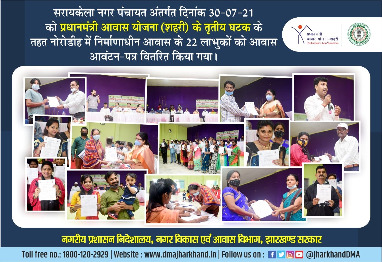 Media Coverage Poster for social media promotion of Saraikela Nagar Panchayat in respect of House allotment.