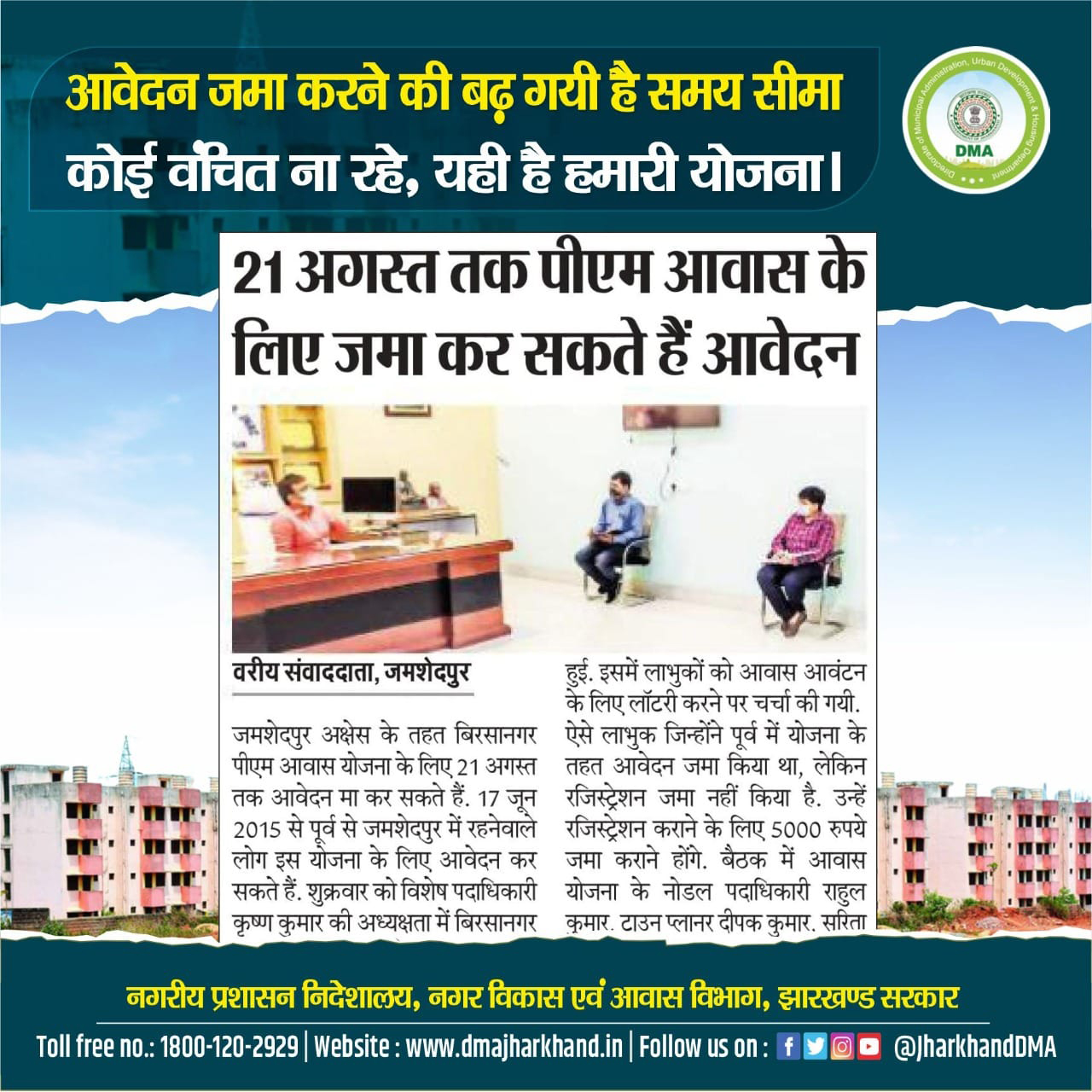 Media Coverage Poster for social media promotion of Jamshedpur Notified Area Committee in respect of PMAY (U) Scheme.