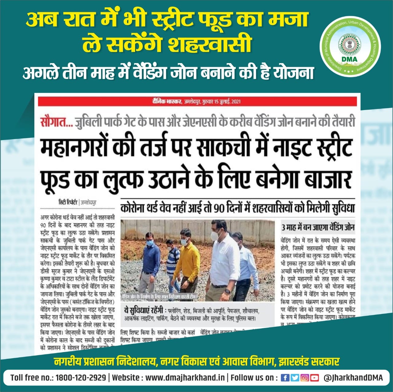 Media Coverage Poster for JNAC in respect of develop night street food market at Sakchi (Jamshedpur).