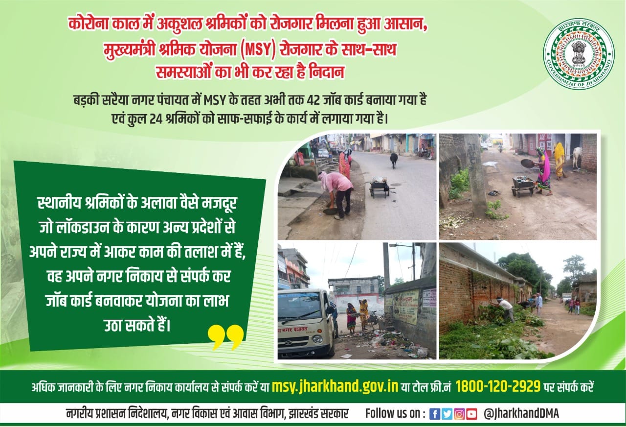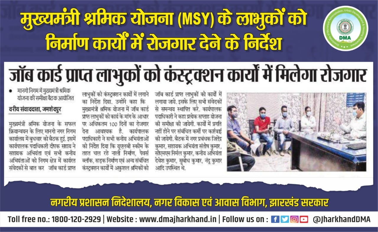 Media Coverage Poster for Mango Municipal Corporation in respect of providing work to the workers registered under the Mukhyamantri Shramik Yojana.