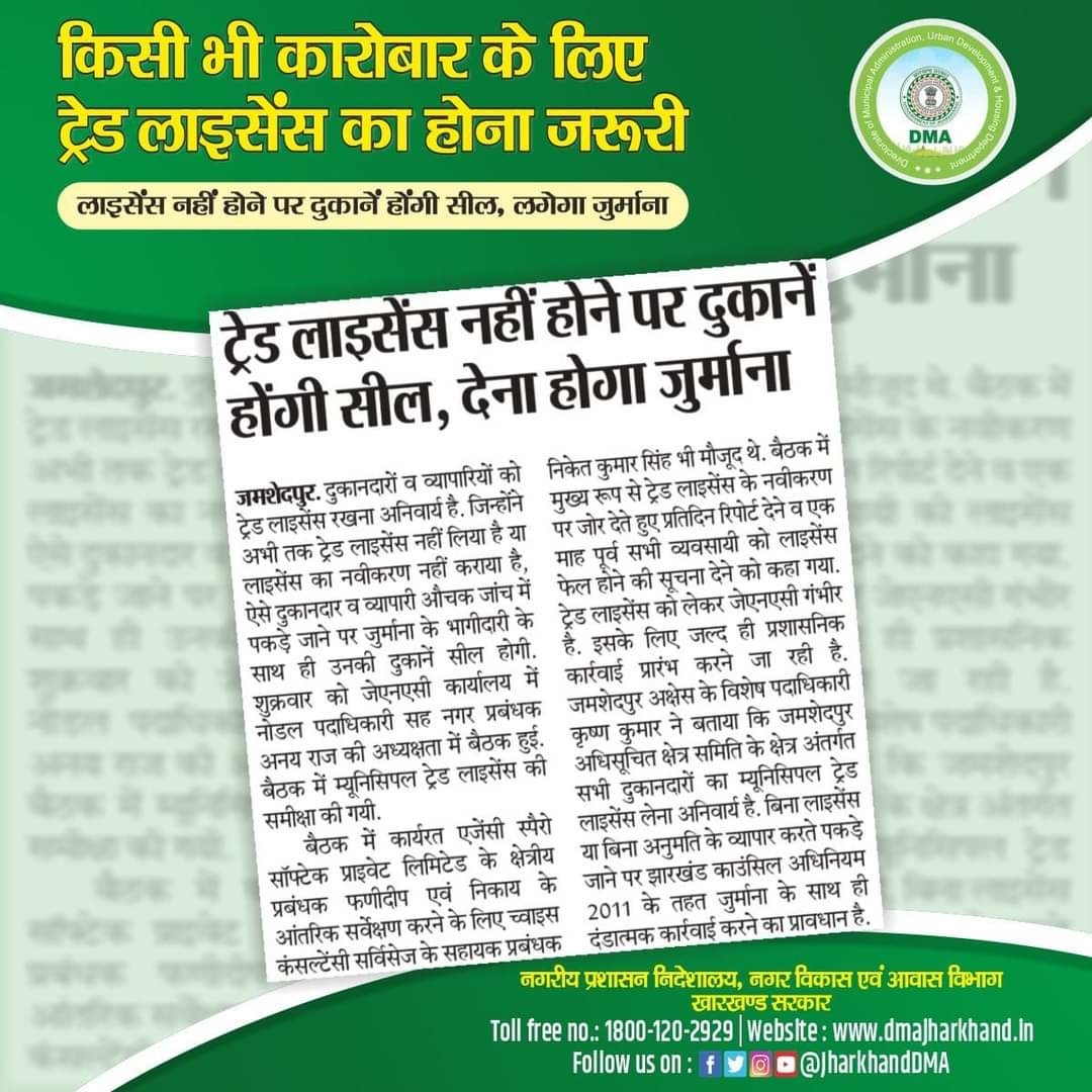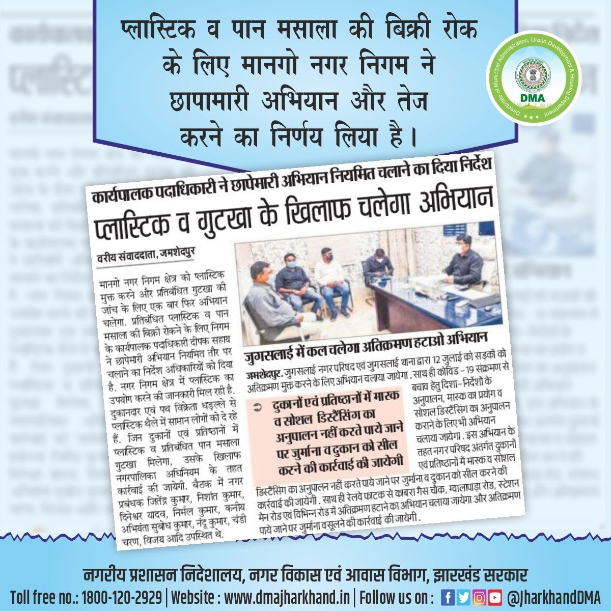 Media Coverage Poster in respect of running special drive for tobacco & plastic products by Mango Municipal Corporation.