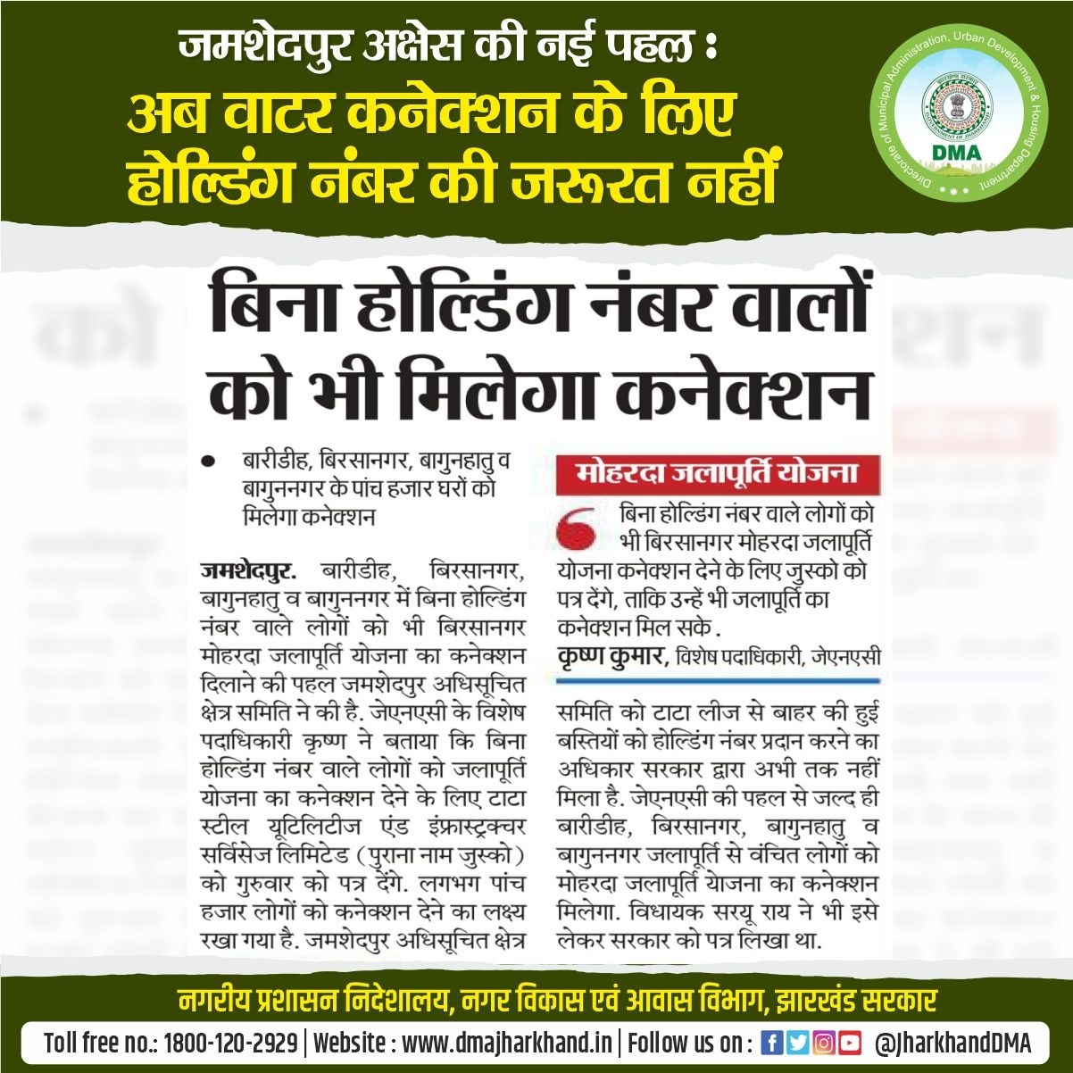 Media Coverage Poster for JNAC in respect of provide water connection without holding number.