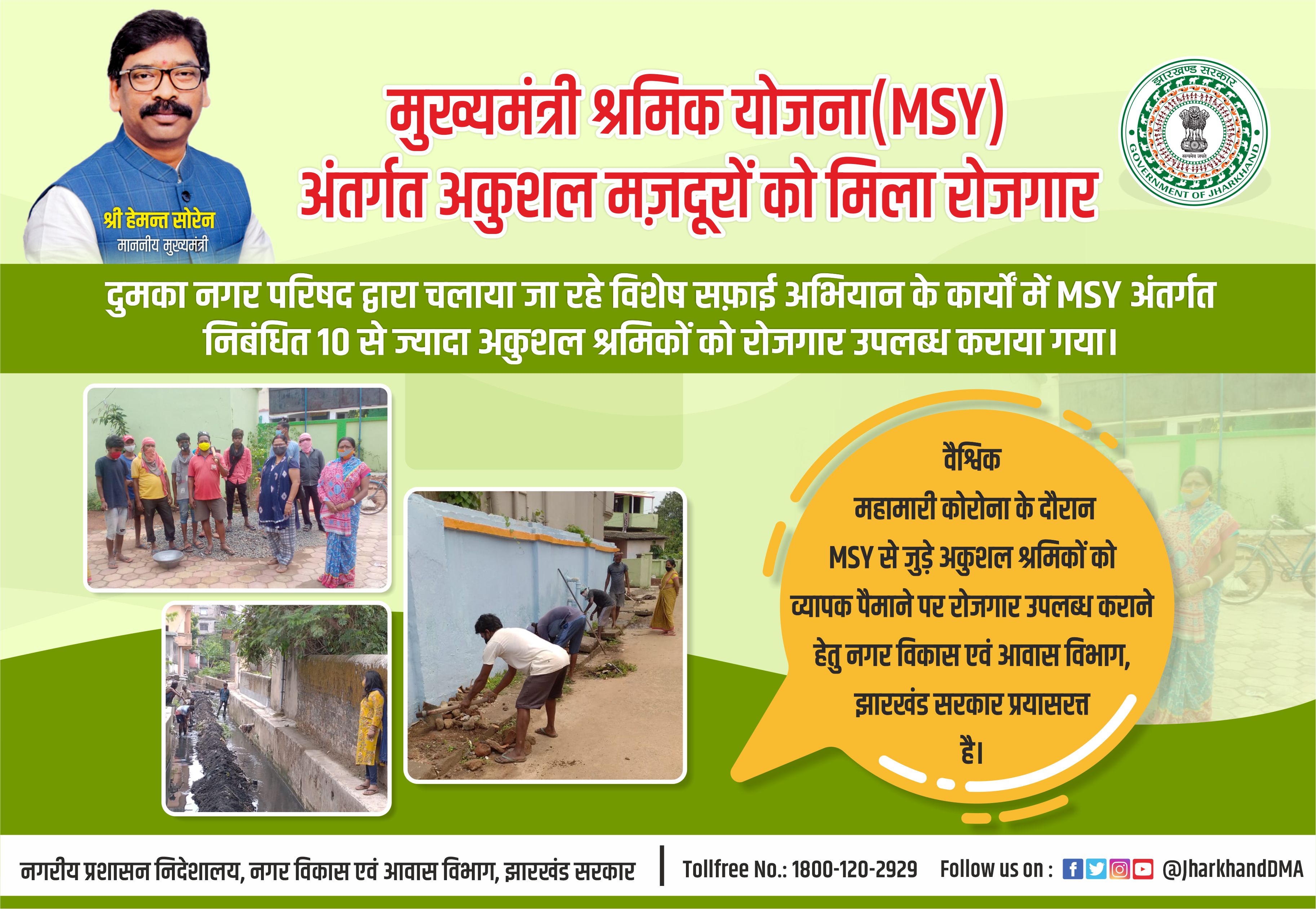 In the special cleanliness campaign being run by Dumka Nagar Parishad, unskilled laborers were provided employment under the Mukhyamantri Shramik Yojana.
