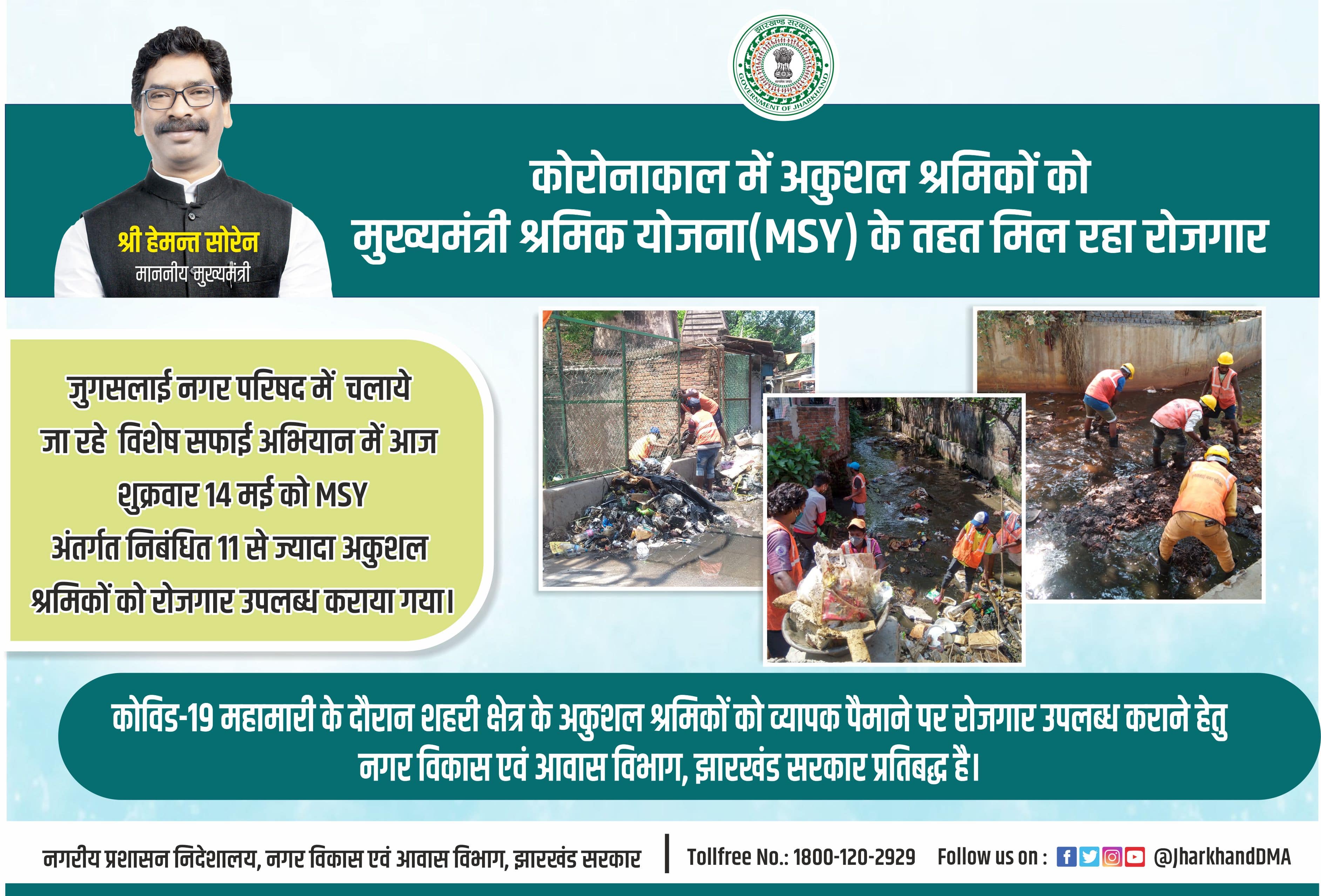 in the special cleanliness campaign being run by Jugslai Nagar Parishad, unskilled laborers were provided employment under the Mukhyamantri Shramik Yojana