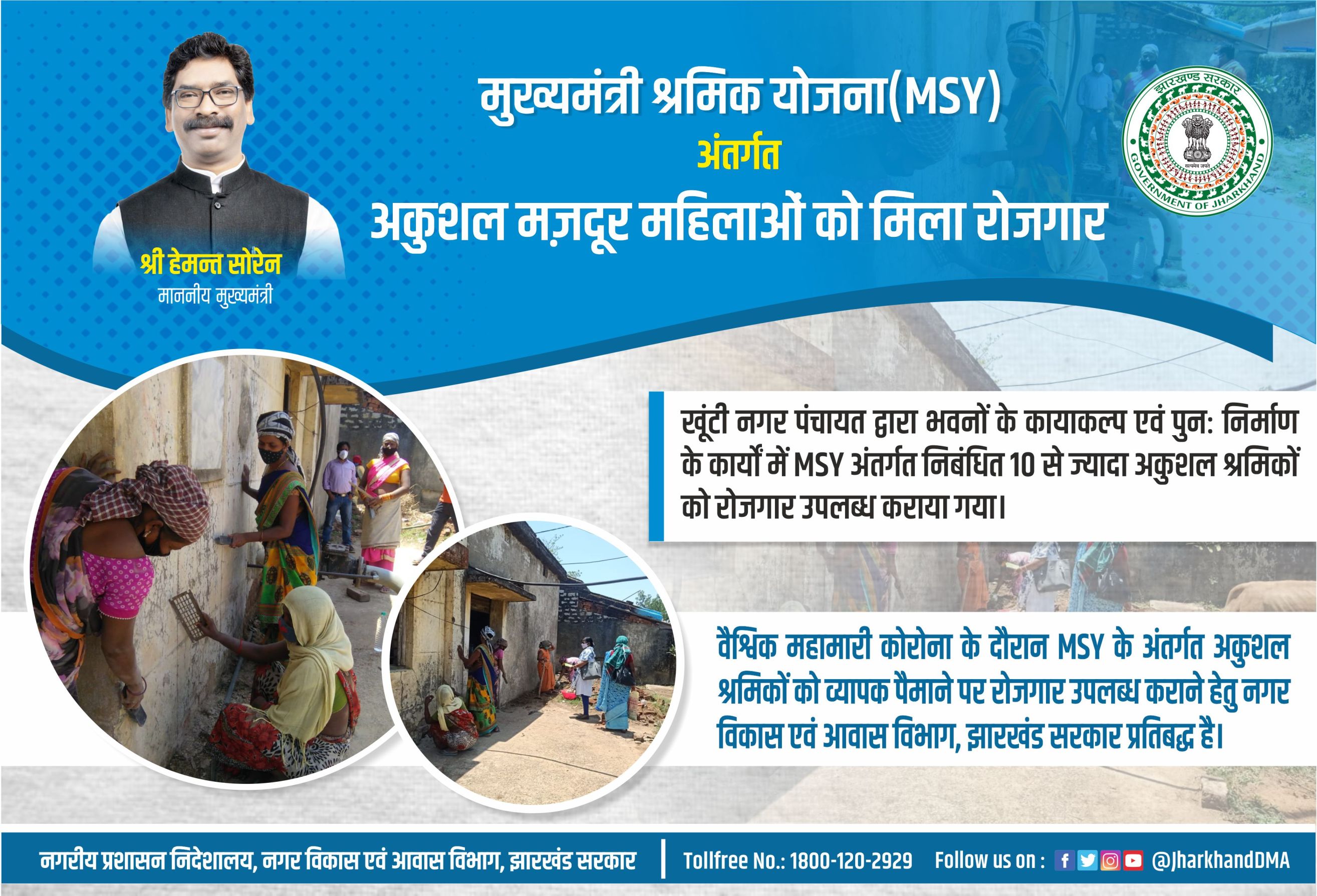 Banner - In Khunti Nagar Panchayat, employment was provided to the workers under Mukhyamantri Shramik Yojana