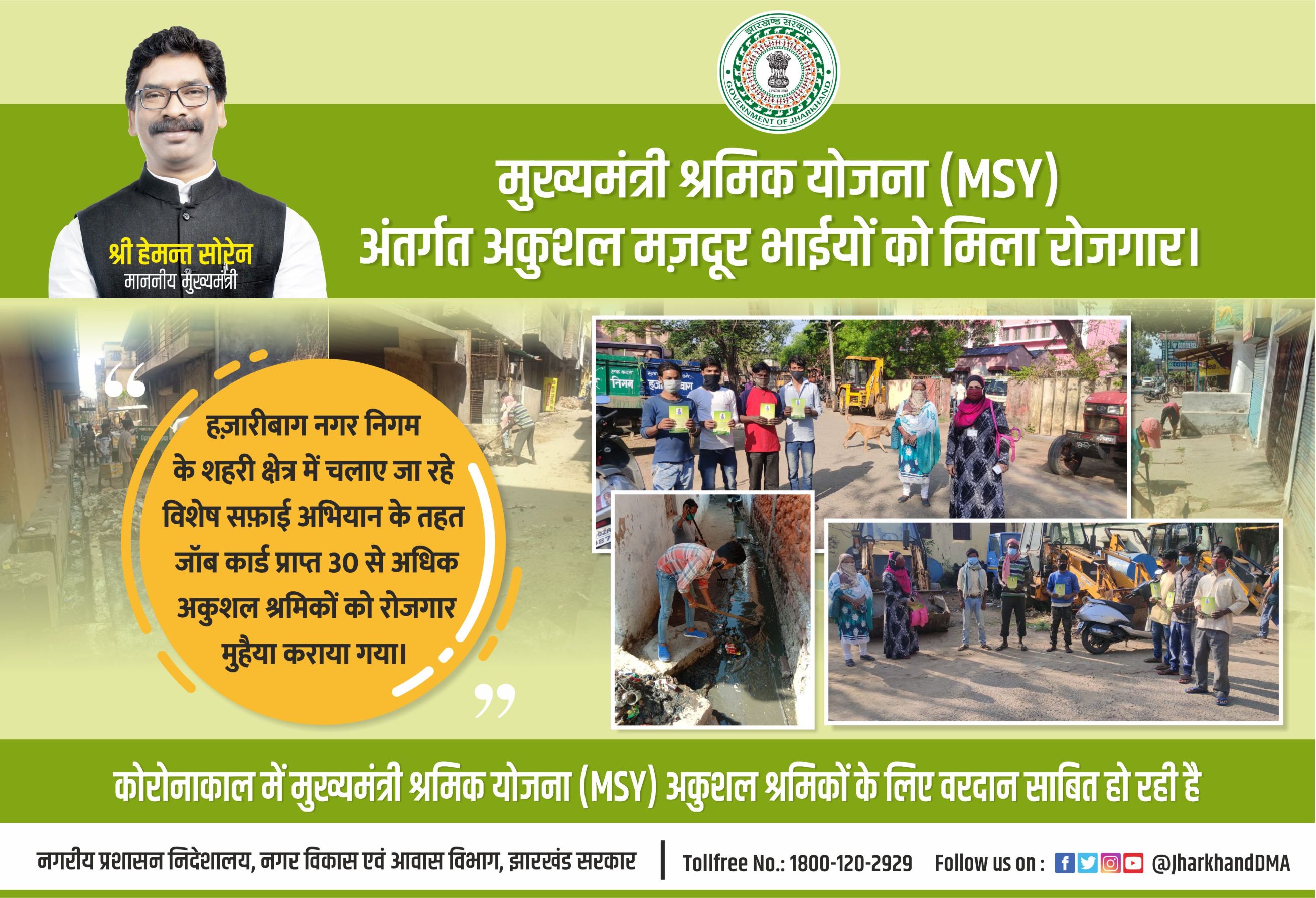 Banner - In Hazaribagh Municipal Corporation area, employment was provided to the workers under Mukhyamantri Shramik Yojana