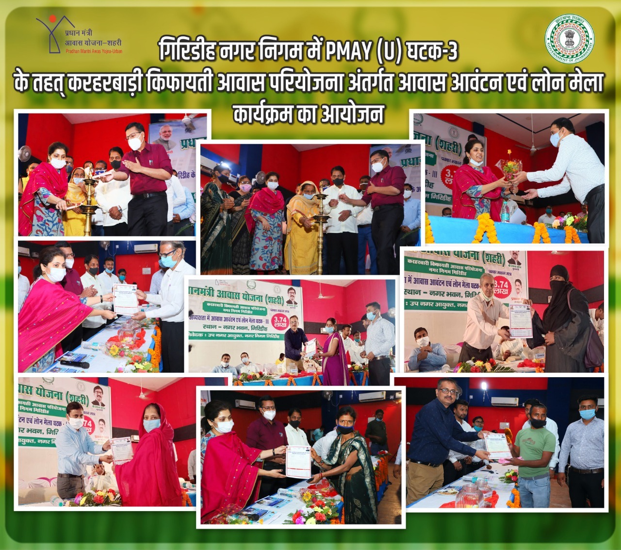 Collage Design of Glimpse of Function held in Giridih for House Allotment for PMAY(U) Vertical III