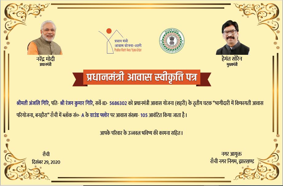 Certificate Design /Letter of acceptance for PMAY-(U) Vertical-III
