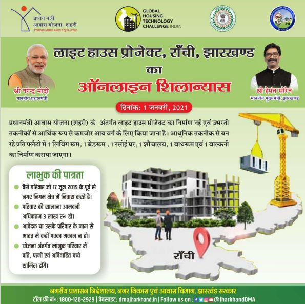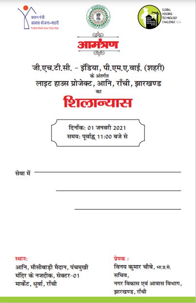 Invitation Card for Inauguration of Light House Project, Ranchi, Programme held under GHTC-India, PMAY-U on 1st January 2021