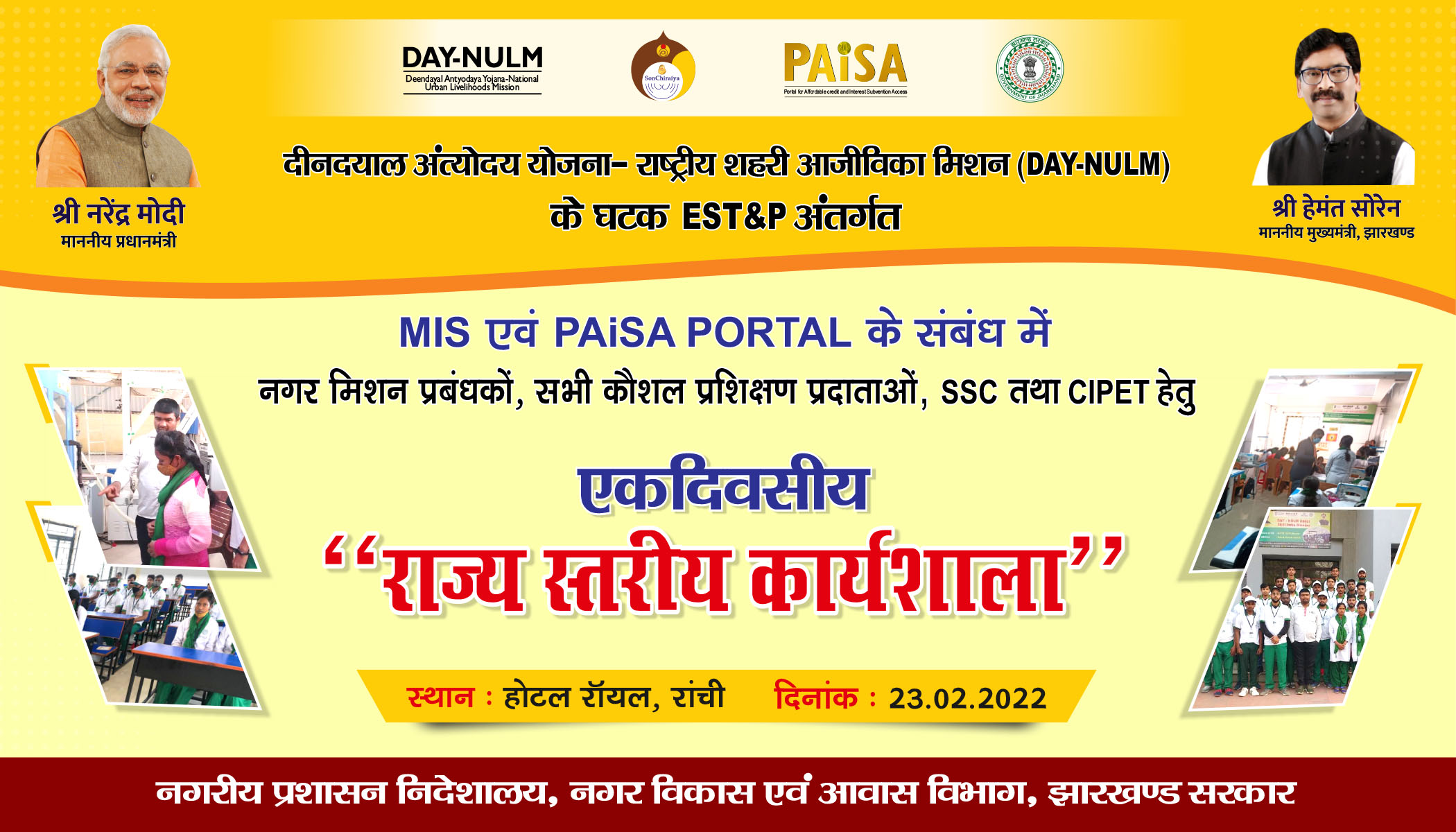 Banner for State level workshop on MIS & Paisa portal under DAY-NULM Scheme.