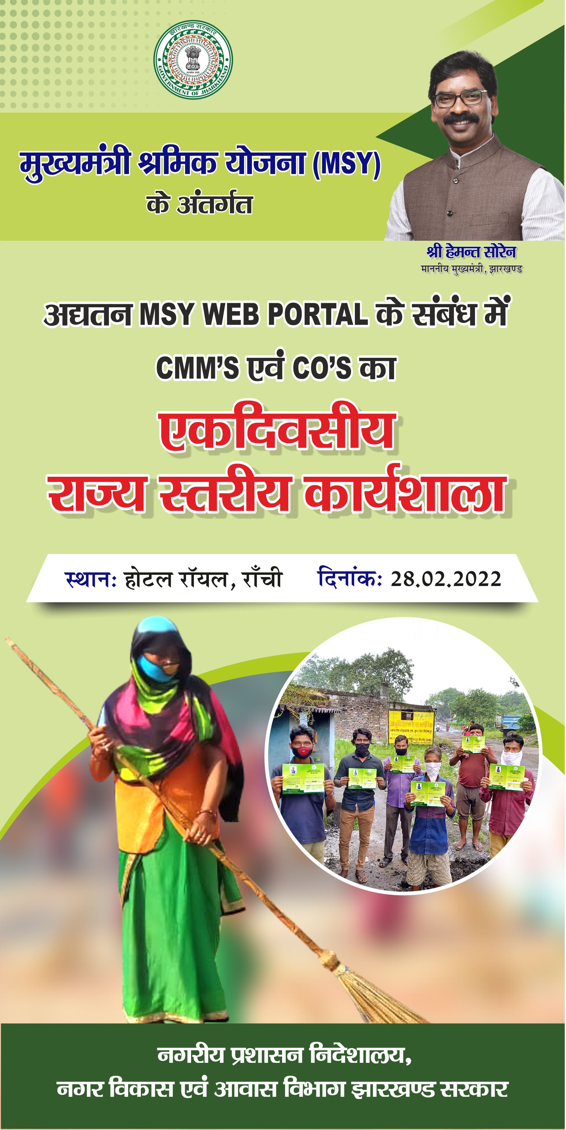 Banner for One day State level workshop on MSY web Portal under MSY Scheme.
