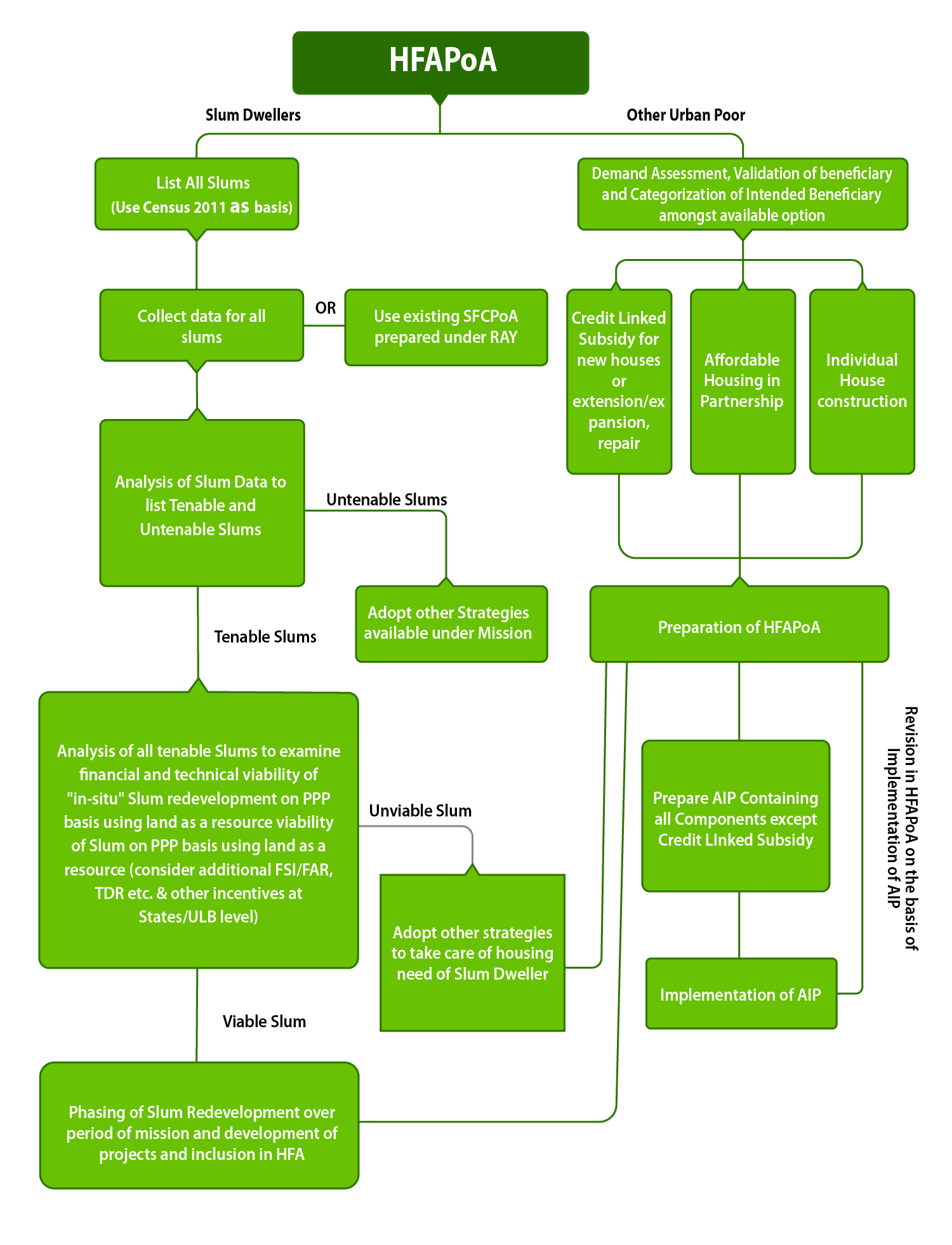Housing For All Plan of Action is demand of housing by eligible beneficiaries in the city along with the interventions selected out of four verticals of the guidelines.These verticals are: